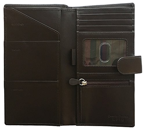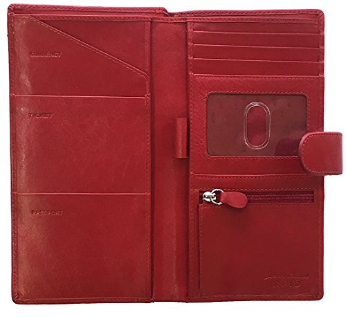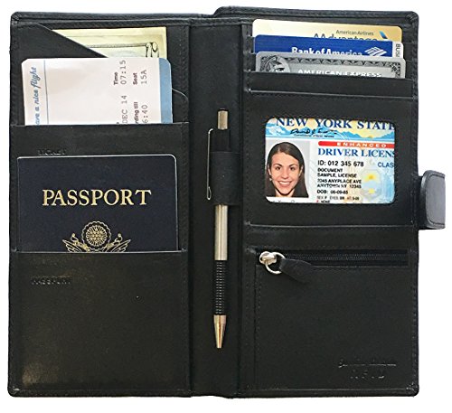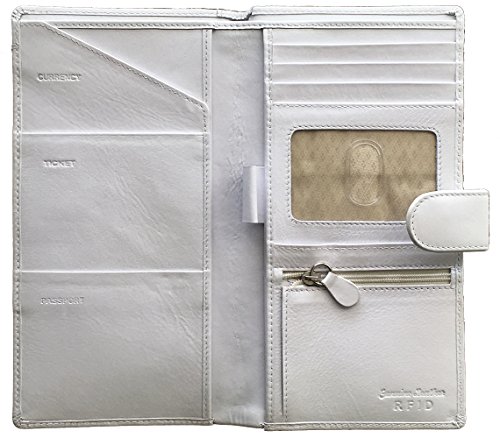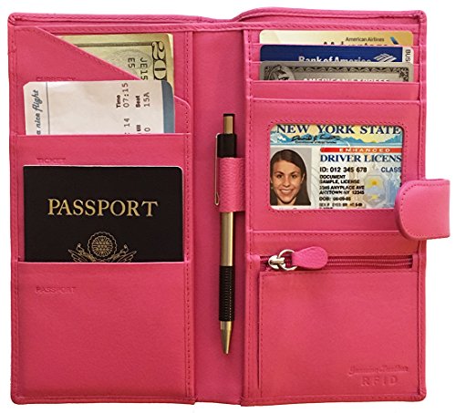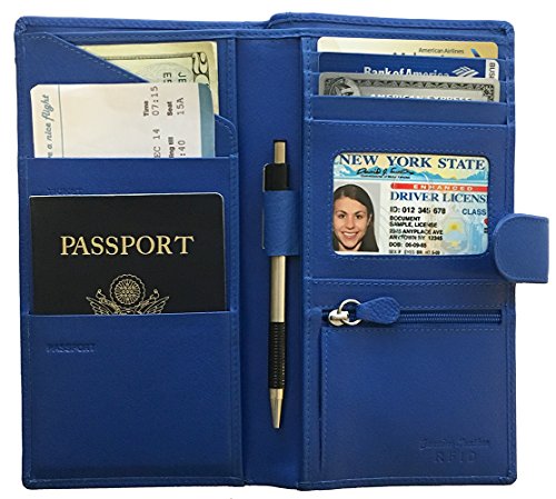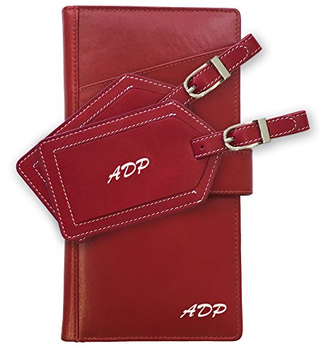 Product Description This personalized RFID travel wallet is a must for any traveler. Made from 100% genuine leather, it is soft yet sturdy and able to hold up to the rigors of traveling. The travel wallet includes inside pockets for your passport, airline ticket/boarding pass and cash. It also includes 3 credit card slots, 1 clear ID window, and a pen loop. There are multiple pockets as well, including front and back slip pockets, a zippered coin pocket, and two inside slip pockets. Convenient snap closure allows you to keep the wallet tightly closed and the contents securely in place. Completely personalized with your initials or monogram (up to four characters). Just tell us how you want it customized. Excellent gift idea for anniversaries, weddings, bridesmaids, groomsmen, or any occasion! This travel wallet has a Radio Frequency Blocking technology to prevent personal information from being stolen by thieves using scanners. One less thing to worry about when you are traveling. Make your suitcase easy to identify with a personalized luggage tag. Strong and adjustable buckle will stay securely fastened to your suitcase. Front flap hides your identification information as a privacy measure. 0