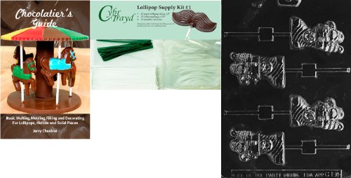 Cybrtrayd Stuffed Stocking Pop Chocolate Mold with Chocolatier's Bundle of 25 Lollipop Sticks, 25 Cello Bags, 25 Green Twist Ties and Chocolatier's Guide