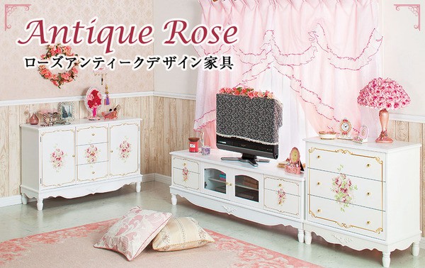 ロマンティックに描かれた華麗なローズ家具シリーズ。