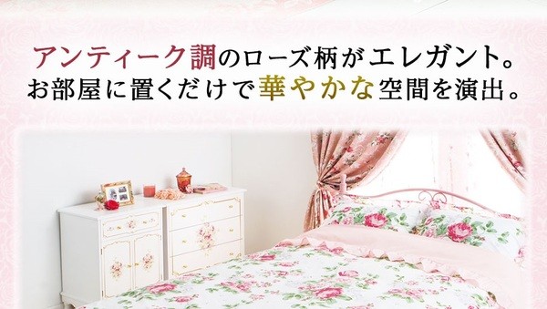 1枚柄のアンティーク調ローズがロマンティックに描かれた華麗なローズ家具シリーズ♪