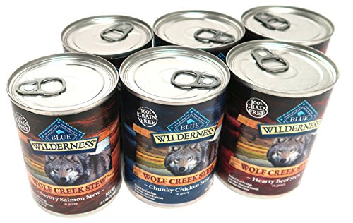 -. Feature : Blue Buffalo Wilderness Wolf Creek Stew Dog Food Variety Pack, 3 Flavors (Savory Salmon Stew, Chunky Chicken Stew, and Hearty Beef Stew) / Made in the USA! Grain Free! / Inspired by Western-style campfire cooking, BLUE Wilderness Wolf Creek Stew is a hearty dinner that captures the spirit of the open prairies where wolves roamed freely. / No Chicken/Poultry By-Products, Corn, Wheat, or Soy. No Artificial Preservatives, Colors, or Flavors / 6 Total Cans (12.5 Ounces Each)