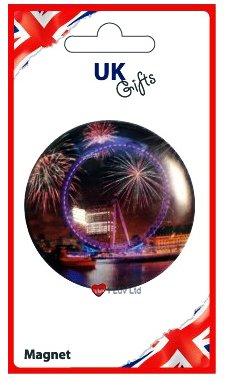 Product DescriptionLondon Eye Crystal MagnetA round crystal magnet with a night time picture of the famous London Eye.Perfect for decorating your fridge or freezer.0
