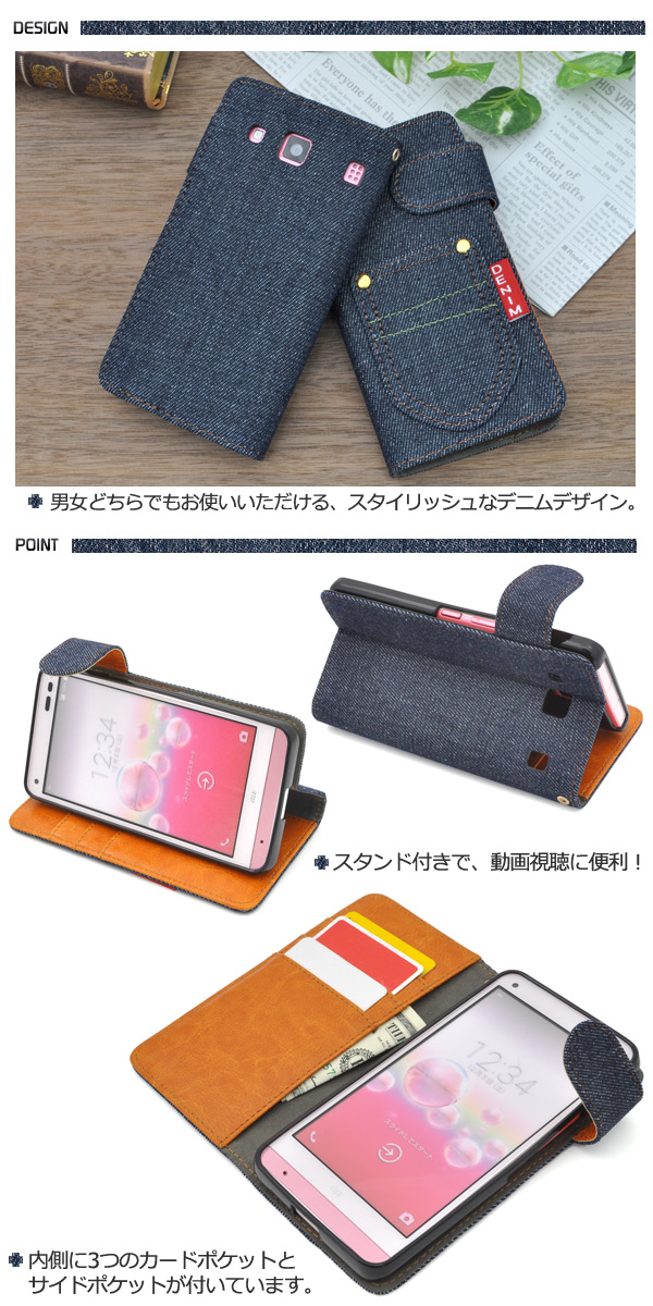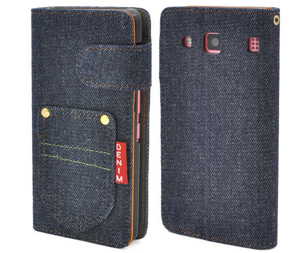 デニムデザインのDIGNO rafre KYV36用スタンドケースポーチ。