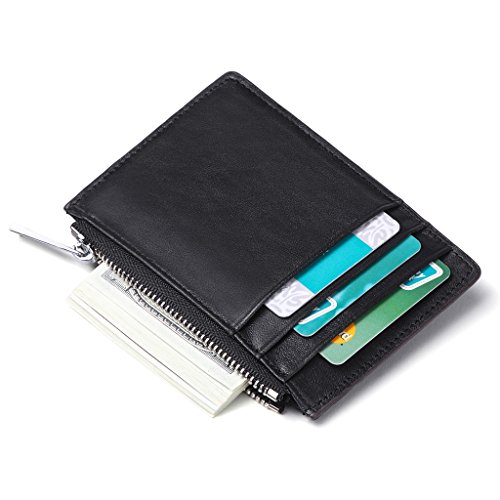 -. Feature : Genuine Leather - Our Mens Wallets are made with 100% high quality soft genuine leather. Each wallet is individually wrapped in a nice square gift box perfect for gifting. Wallet Dimension: 4.65"(L) x 3.27"(W) x 0.3"(T) / Safety & P.R.Ivacy - Our RFID Blocking Wallet is equipped with advanced unique proP.R.Ietary blocking material, it effectively protects your RFID Credit Cards, Debit Cards and ID Cards from electronic pickpocketing like RFID readers and scanners! / Premium Functionality - Our Men's RFID Wallet not only offers security, it's also very functional. It features 3 card slots, 1 ID window and a zipper pocket for notes, cash, and coins. The ID window with transparent material, very convenient to show your ID Card or Driver License without taking it out. / Ultra Slim & Minimalist Design - This is a ultra slim card case or wallet. The slim profile can easily slips in and out front or back pocket, not bulky at all. / 100% Money Back Guarantee - We are sure that you will love our slim front pocket wallet! If this wallet does not meet your needs, contact us without hesitate. We will offer you a full refund or replacement.
