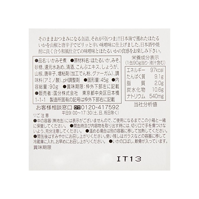원본상품명: K&K 缶つま ?産 ほたるいかの辛味? 90g