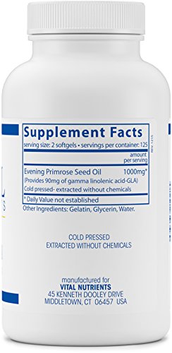Evening Primrose Oil contains high amounts of the essential fat Gamma Linolenic Acid (GLA), an Omega 6 fatty acid that is essential for metabolism, but cannot be produced in the body. GLA helps support cartilage and joint function, dilates smooth muscle, and helps maintain nerve function and a cholesterol level that is already within the normal range. It also alleviates common mild symptoms associated with PMS. Europeans and Native Americans have used primrose oil for centuries for its health benefits. Vital Nutrients mission is to manufacture superior quality nutraceuticals that exceed both industry and government standards and provide clinically effective results. They provide over 200 science-based and clinically effective products. They have a comprehensive quality assurance program to ensure that purity and potency is consistently met on every product that they manufacture. Vital Nutrients uses independent U.S. ethical laboratories to test all raw materials and finished products. Each raw material is tested, regardless of origin, for purity and potency. All finished products are tested through a real time stability protocol for expiration date validation. They are an FDA Inspected facility that exceeds FDA cGMPs, and a member of the NPA.Feature