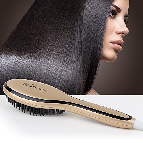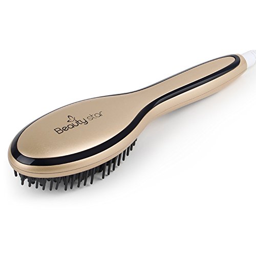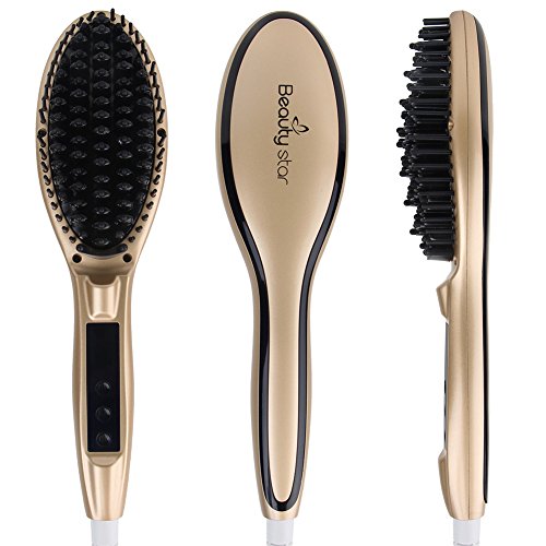 Advantages:Beauty Star Brush Supply 12 months warranty, The digital hair straightener brush will be a perfect replacement of traditional flat iron straightener which helps solve your hairstyle problem and support head massage without any harm.