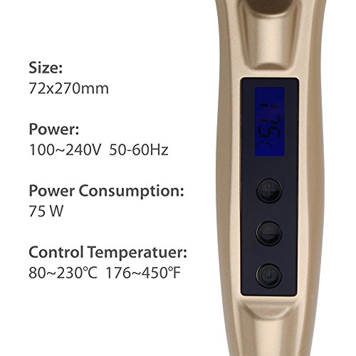 Temperature: Max 450℉, Auto keep constant temperature at 365℉ for all types of hair, customized set 410℉for natural texture hair, 450℉ for thick or wavy hair, effortless and efficient straightening styling.