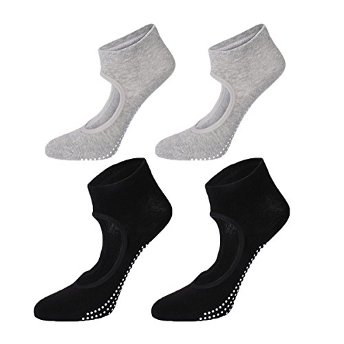 -. Title : Yoga Pilates Socks Silicone Non-slip Skid Grip Barre Ankle Thick Cotton Mary Jane Socks for Women Girl 2 Pack, Black and Grey