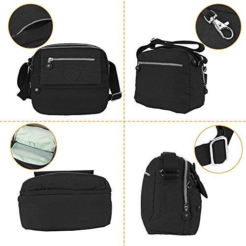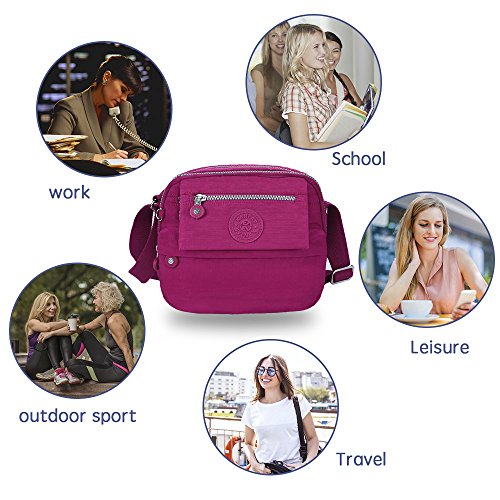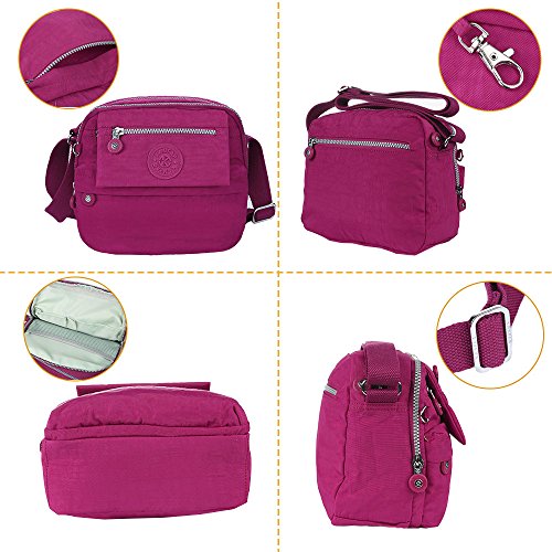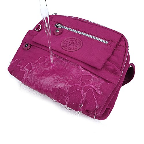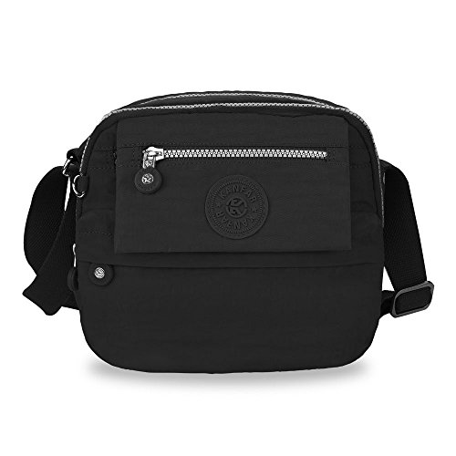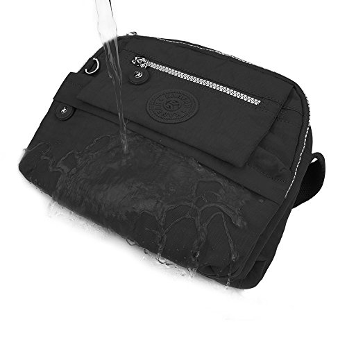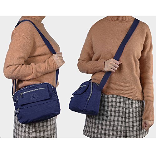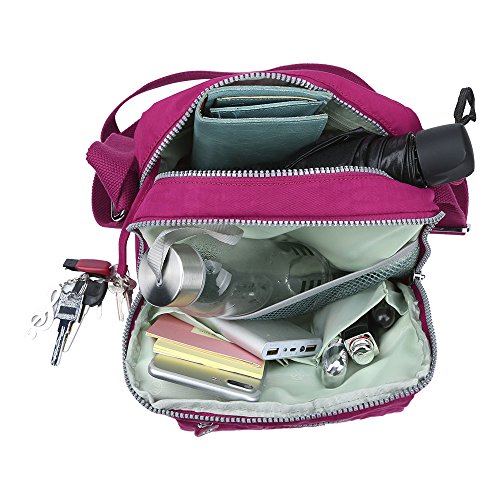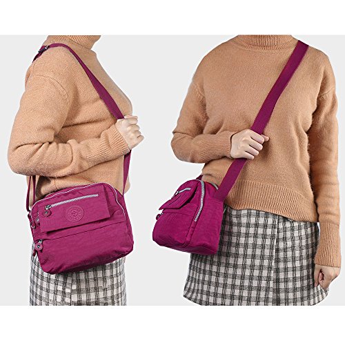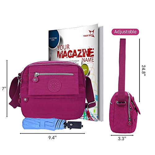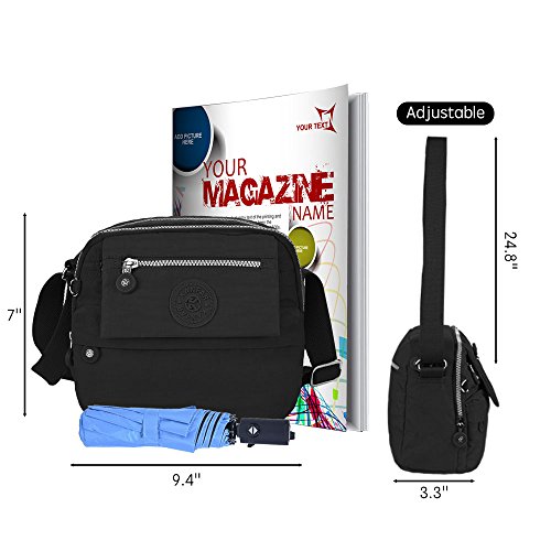 Product Description GOOD NYLON CROSSBODY BAG 1.Crossbody/Shoulder/Messenger purse bag. Good Nylon material, Easy-clean,fashion design, durable, water-resistant, good lining, light weight, functional bag, Eco-friendly dyeing, no smell, long-lasting, solid seams, good fabric handle. 2.It has 2 main compartments with interior cell phone pen pocket keys strap grids pocket etc, 5 exterior front and back zippered pockets, Good choice for a everyday bag or weekend travel bag, diapers/baby bag. 3. Enough room to carry your keys, cellphone, kindle,electronics, wallet, books, umbrella, notebooks, make-up, water bottle etc. 0 |