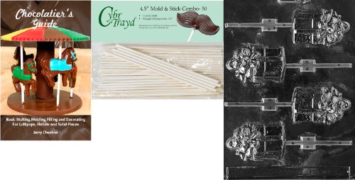 Cybrtrayd 'Christmas Present Lolly' Christmas Chocolate Candy Mold with 50 4.5-Inch Lollipop Sticks and Chocolatier's Guide