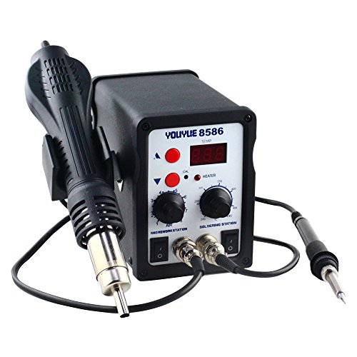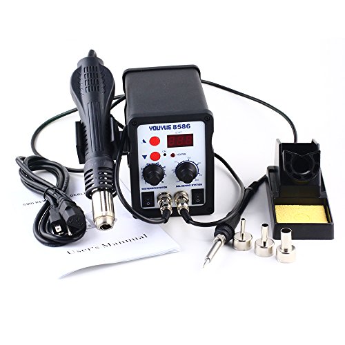 IMAX 2 in1 SMD Rework Soldering Station Hot Air Gun Solder Iron Welder ESD 3 Nozzles 110V (SI8586)
