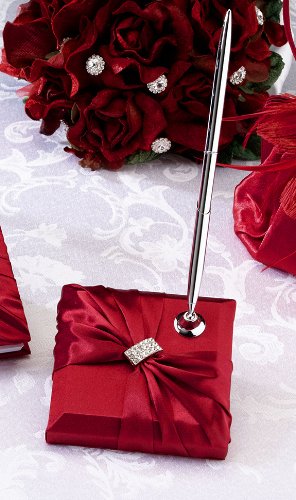 -. Binding : Misc. -. Brand : Lillian Rose -. Color : Red -. EAN : 0710309379096 -. Feature : Red satin sash reflects passion and true love / The base is decorated with a red sash and rhinestone ornament / Measures 3.75" / Fashionable and trendy wedding accessory -. Label : Lillian Rose -. Manufacturer : Lillian Rose -. Model : PEN610 R -. MPN : PEN610 R -. PackageQuantity : 1 -. PartNumber : PEN610 R -. ProductGroup : Home -. ProductTypeName : HOME -. Publisher : Lillian Rose -. Size : Base: 3.75" square -. Studio : Lillian Rose -. Title : Lillian Rose Satin Rhinestone Pen Set, 3.75-Inch, Red -. UPC : 013582050578