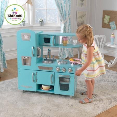 -. Binding : Toy -. EAN : 0713002520277 -. Feature : Includes cordless phone accessory Storage below sink and next to microwave / Removable sink for easy cleanup Large enough that multiple children can play at once / Made of composite wood products Smart, sturdy construction / Assembly required Includes detailed, step-by-step assembly instructions / Dimensions: 33"L x 11.75"W x 35.75"H -. IsAdultProduct : 0 -. Label : KidKraft -. Manufacturer : KidKraft -. ProductGroup : Toy -. ProductTypeName : TOYS_AND_GAMES -. Publisher : KidKraft -. Studio : KidKraft -. Title : KidKraft Vintage Wooden Play Kitchen Set, Blue -. UPC : 713002520277