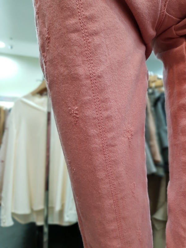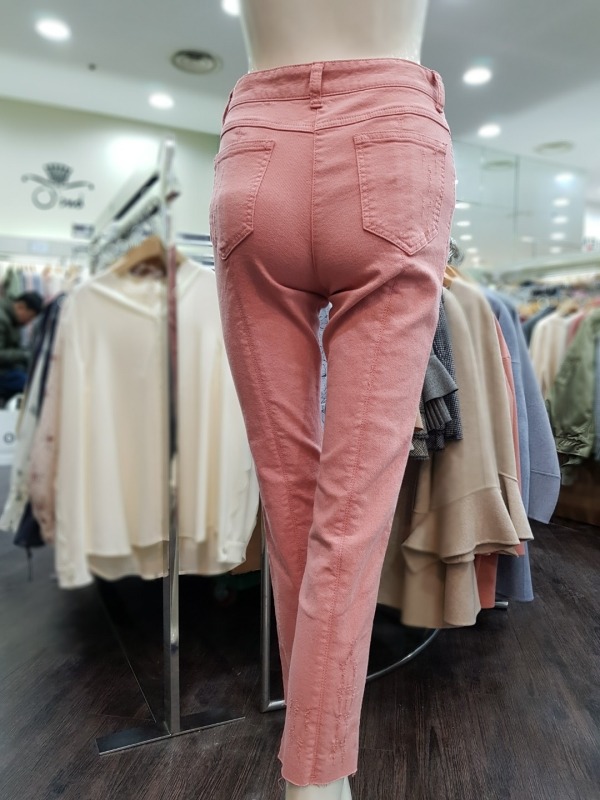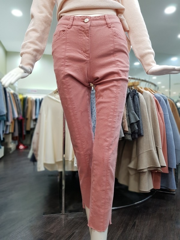 솔리드한 색감이 돋보이는 바지로 중앙 박음선으로 인해 슬림한 핏이 연출되며,밑단의 컷딩과 스크레치 디테일이 멋스러운 느낌은 주는 아이템 입니다.