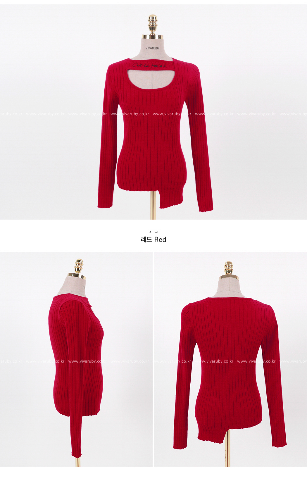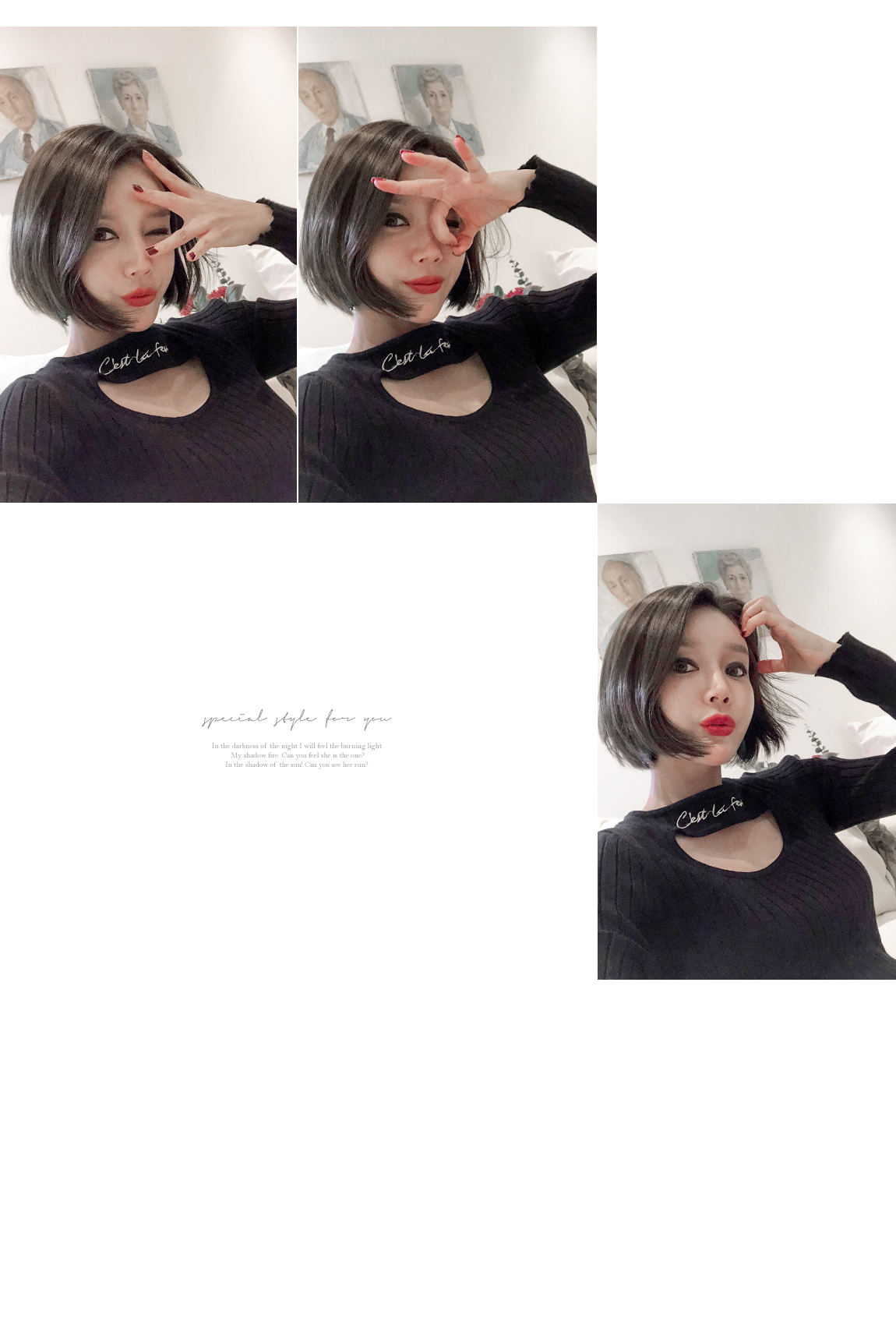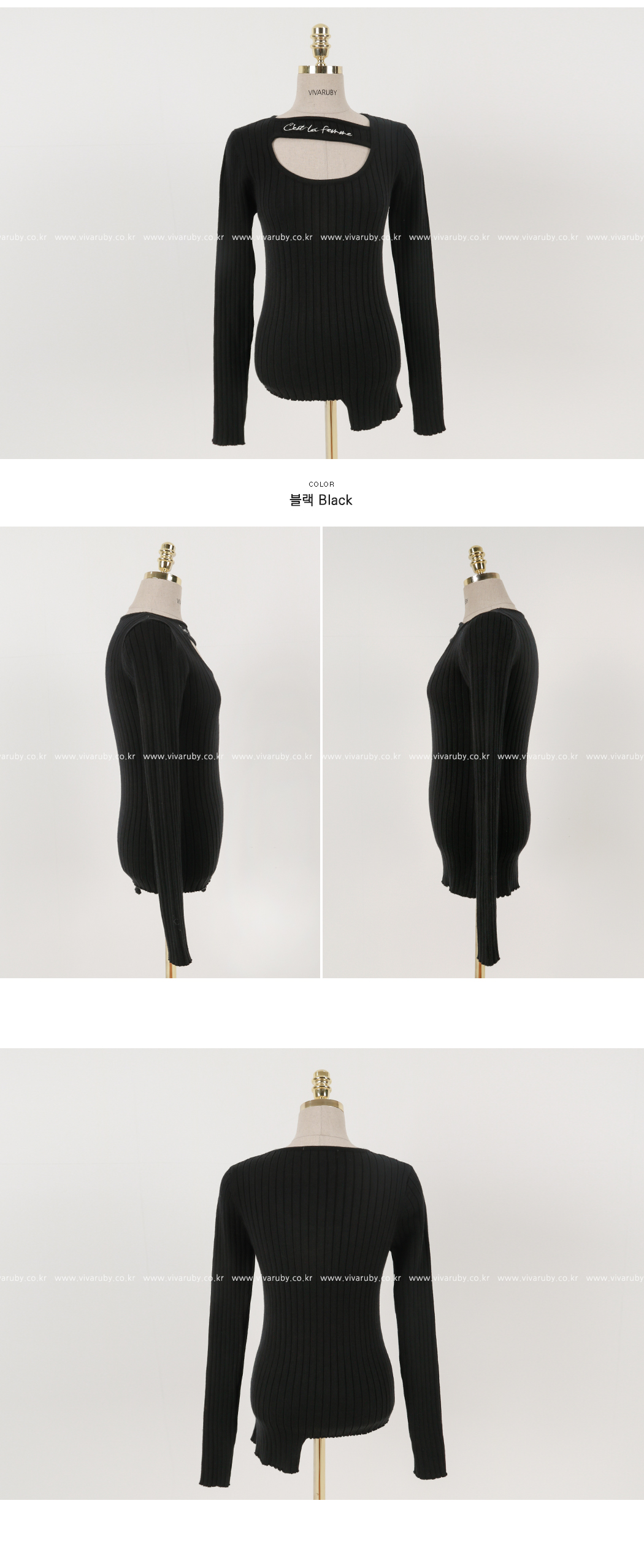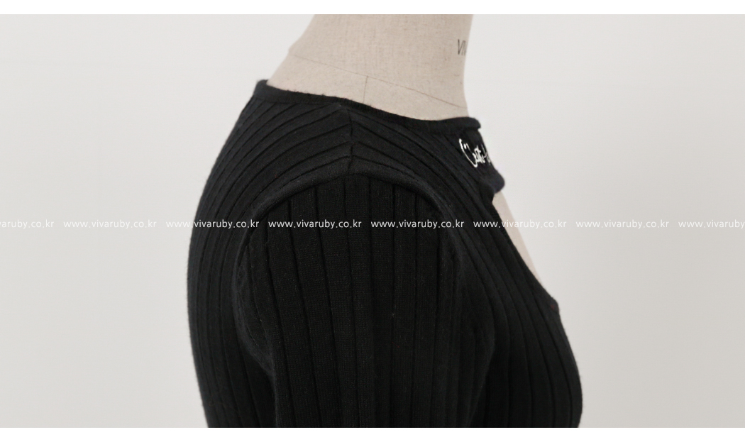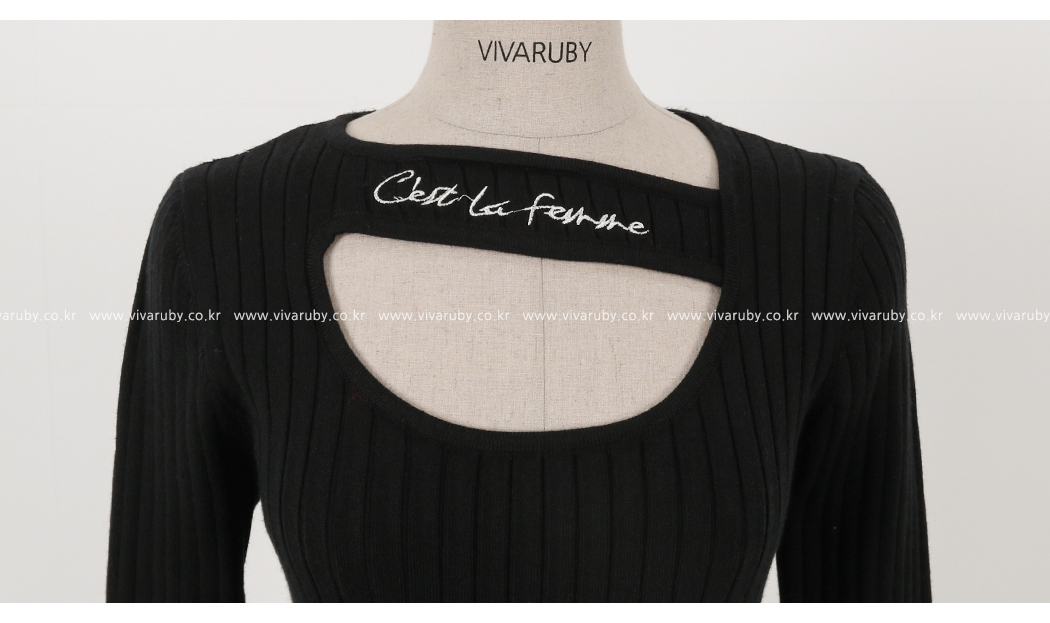 네크라인의 컷팅과 레터링 디테일로 유니크한 포인트를 주었어요