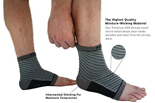 -. Feature : INSTANT PLANTAR RELIEF to stop that horrible heel pain. Our premium sleeves use targeted arch & ankle compression that's clinically proven to dramatically increase blood circulation in your feet, reduce ankle swelling, and minimize pressure on the plantar fascia, so you can stay active day and night without annoying aches and throbbing foot pain. / LIFETIME REFUND / REPLACE GUARANTEE our products - we stand by 100% satisfaction warranty guaranteed. Unisex for both men and women. Don't settle for cheap fabrics from less quality brands. We're proud of our 5 star seller review score so get your gift of health today! / EXTRAORDINARY ALL DAY COMFORT and fit. Our sleeves are breathable, washable and moisture wicking. This lightweight toe-less ankle support will stay dry and odor free even during an intense sweat filled run, tough workout training, athletic race, playing sports or while you walk in them all day. / INNOVATIVE LIGHTWEIGHT DESIGN FOR ALL DAY USE so you wear them at work, walking during the day, outdoor, running, or at night to help relieve fasciitis and heel spurs. Whether wearing orthotics, under a sock, compressing tapings, inserts, splints, braces, orthopedic shoe brace, you'll enjoy these comfortable sleeves as a compliment to your existing foot supports. / SUPER HIGH QUALITY & LONG LASTING premium material blend that will hold your foot & ankle perfectly, without ever sacrificing comfort. Forget buying a cheap copper ankle sleeve . Best while walking or running with shoes, sandals, boots, insoles, and under any pair of socks. Get an amazing deal, value, P.R.Ice, and fast pain relief from tendonitis, edema, or achilles injuries.