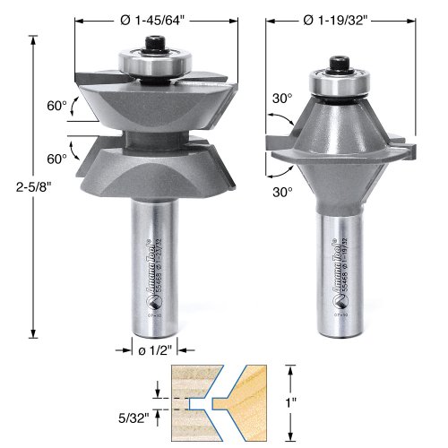 Amana Tool 55468 1-19/32-Inch Diameter by 1-Inch Cutting Height by 1/2-Inch Shank Edge Banding Router Bit Set, 2-Piece