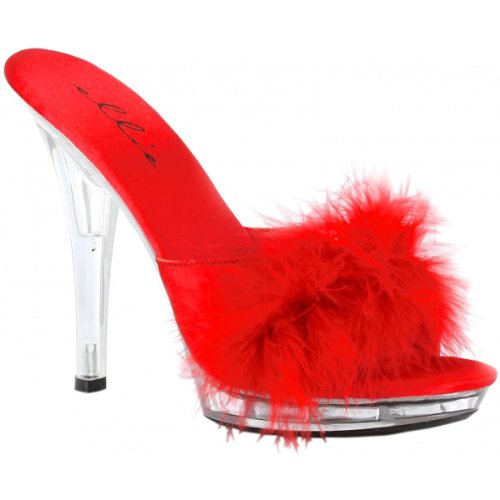 ELLIE SASHA 5" Heel Maribou Slipper , RED, 10 Size
