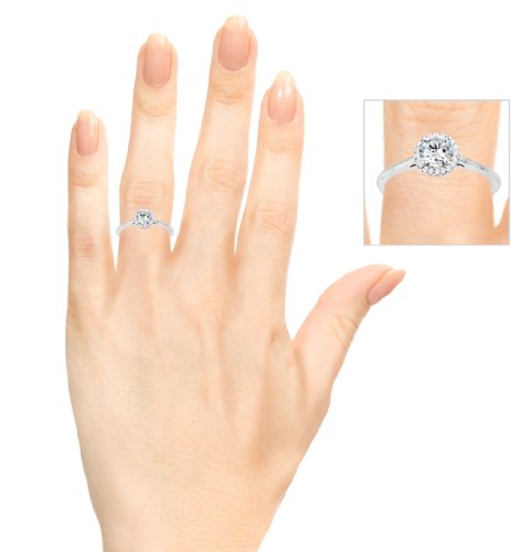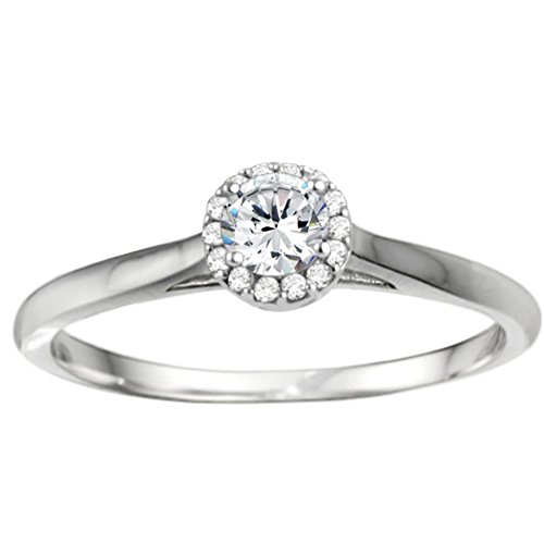 -. Title : Sterling Silver Perfect Halo Promise Ring with Diamonds (G-H,I2-I3) (0.25 ct. tw.)