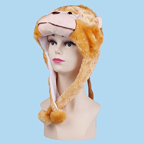 -. Title : Monkey_Pom-Pom Winter Animal Hat Fashion Cap Animal Plush Fluffy Warm 100% Polyester (US Seller)