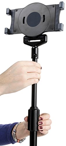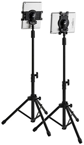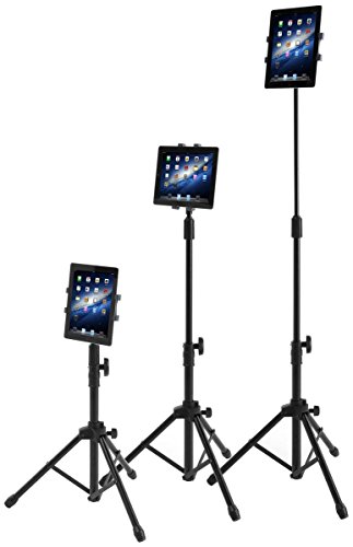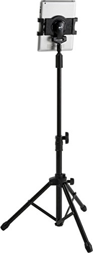Displays2go iPad Floor Stand with Tripod Base, Height Adjustable with Telescoping Post, Portable with Carry Case (IPDADTA01F)