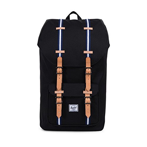 Herschel Little America Backpack is a popular silhouette that elevates an iconic mountaineering style with modern functionality. Featuring signature striped fabric liner, air mesh back padding, and contoured shoulder straps.