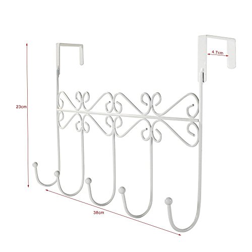 -. Feature : No hardware is required for the simplest way to organize and make use of un-used door space / It fits any standard door up to 1-3/4" thick, for any bedroom, office, or entry way door / The best over the door hook for both style and organization,strong hooks to hold heavy coats and backpacks / With this over the door towel hook, scattered clothes will no more be a problem / Dimesions: 14.9 x 9 x 2 inches (please allow about 0.3 inches measuring error)