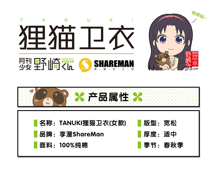 月刊少女野崎君 狸猫 TANUKI 女款 卫衣