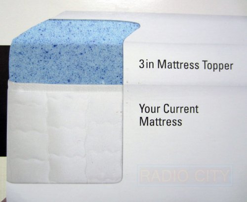 -. Binding : Kitchen -. Brand : Sleep Innovations -. Color : White - Blue -. EAN : 0617014148675 -. Feature : Sleep Innovations gel memory foam provides the ultimate in comfort, support and stays cool throughout the night. / Superior comfort and pressure point relief compared to traditional memory foam; improves sleep by reducing tossing and turning caused by painful pressure points. / Sleep Deeper, Cooler... Better! Premium memory foam infused with gel beads for exceptional comfort and cushioning. / Stain-Release Technology. / Twin Size (39in x 75in x 3in) Foam Made in the USA -. Label : Sleep Innovations -. Manufacturer : Sleep Innovations -. Model : 39in x 75in x 3in -. MPN : na -. PackageQuantity : 1 -. PartNumber : na -. ProductGroup : Home -. ProductTypeName : HOME_BED_AND_BATH -. Publisher : Sleep Innovations -. Size : Twin -. Studio : Sleep Innovations -. Title : Novaform Gel Memory Foam 3 Inch Mattress Topper-Twin Size -. UPC : 739485805106
