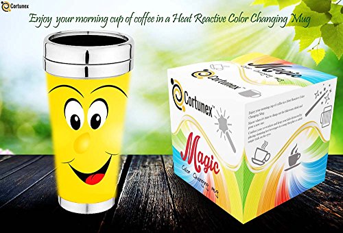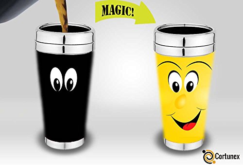 Magic Coffee Mugs Travel Mug Heat Sensitive Color Changing Stainless Steel Coffee Mug | Funny Coffee Cup | Funny Smiley Face Thermos 16-ounce