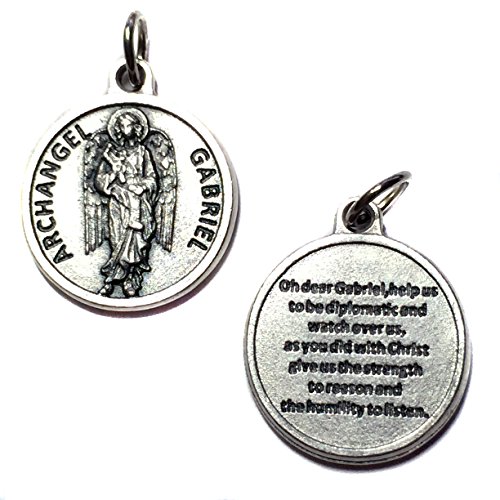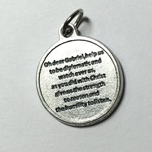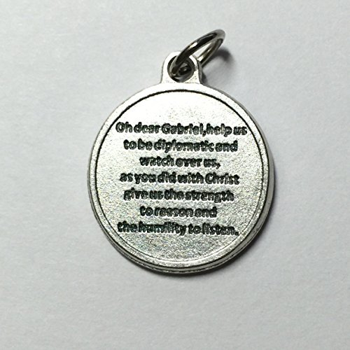Archangel Gabriel Protect Protection Medal Pendant Charm with Prayer Made in Italy Silver Tone Catholic 3/4"