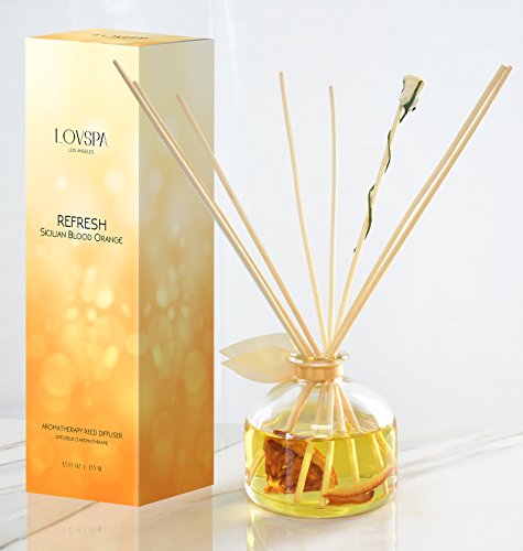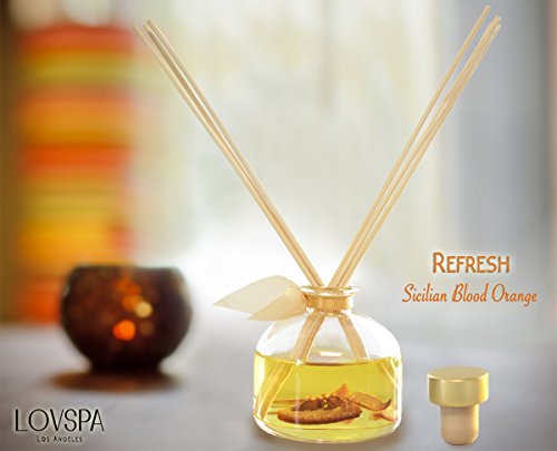 Citrus Reed Diffuser Set | REFRESH Sicilian Blood Orange by LOVSPA | Made with Essential Oils & Real Orange Pieces! Aromatherapy Fragrance Oil for Scented Sticks | Great Birthday Gift Idea !
