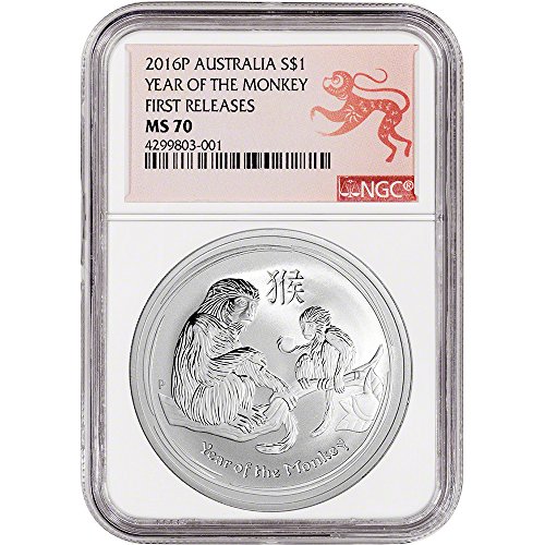2016 AU Australia Silver (1 oz) Year of the Monkey First Releases - Lunar Label $1 MS70 NGC