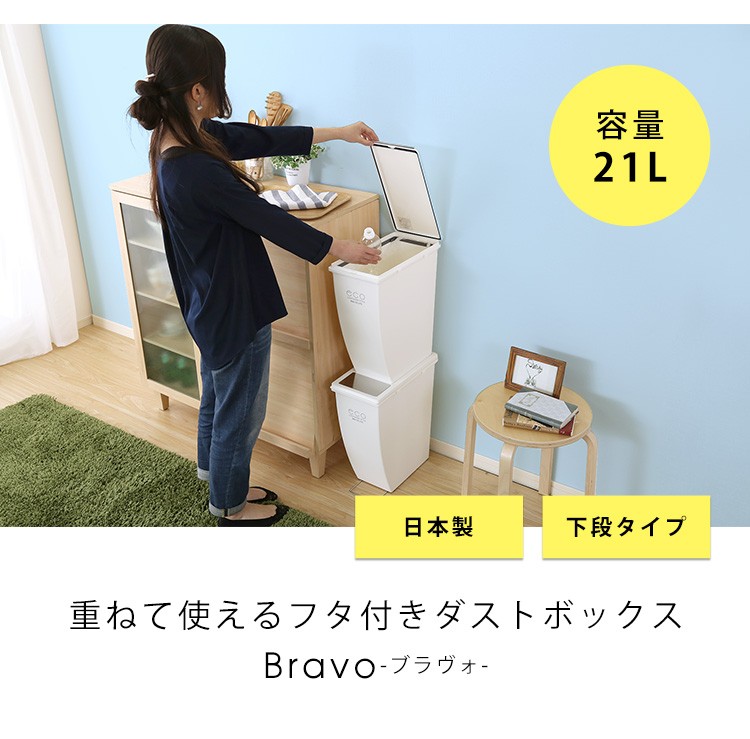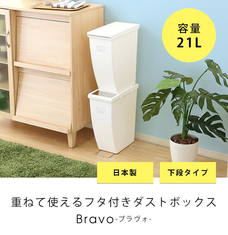 21リットルの使いやすいゴミ箱!重ねて使えてレイアウト自由!水洗いできていつでも清潔に!安心の日本製です!【商品名】エココンテナスタイル スリムごみ箱下段【Bravo-ブラヴォ-】ゴミ箱 ふた付き ダストボックススリム シンプル スタッキング21L