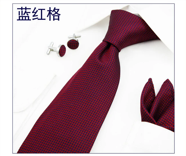 | [해외]100% 실크 붉은 격자 무늬 목 넥타이 포켓 스퀘어 커프스 세트 + 선물 상자 남자 비즈니스 회의 인터뷰 웨딩 파티 |