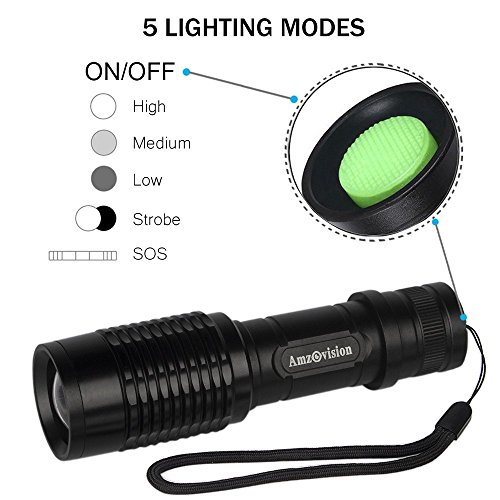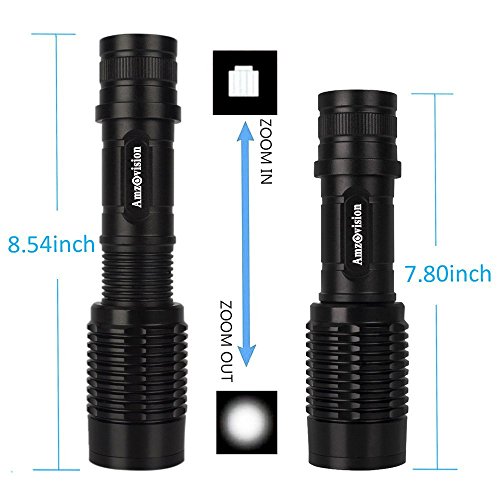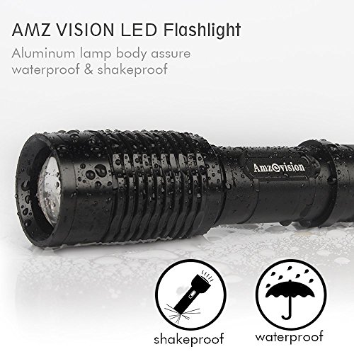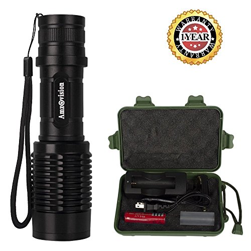 Amz vision Tactical Flashlights, Super Bright Portable Handheld LED Flashlight Zoomable Adjustable Focus 5 Light Modes Torch with 18650 Rechargeable Battery and Charger