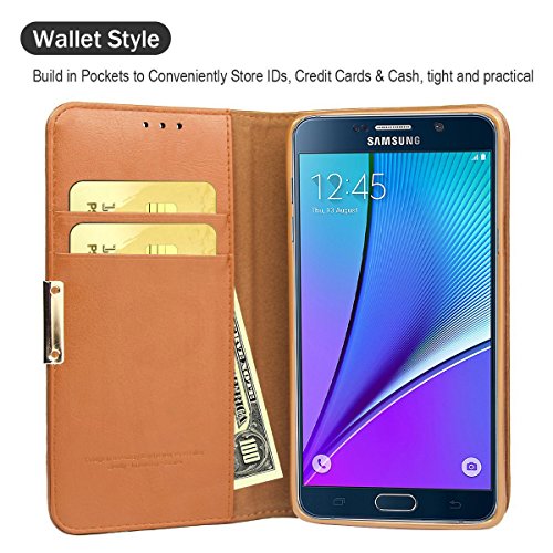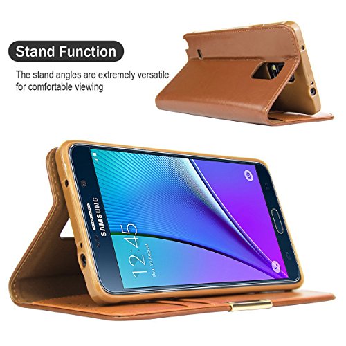 Title : Galaxy Note 5 Case, 3C-Aone Genuine Leather [Wallet] case, [Card slots] [Luxury Series] Book Cover, [Secure Magnetic Closure] Stand Feature Luxury Flip Case For Samsung Galaxy Note 5 (Brown)