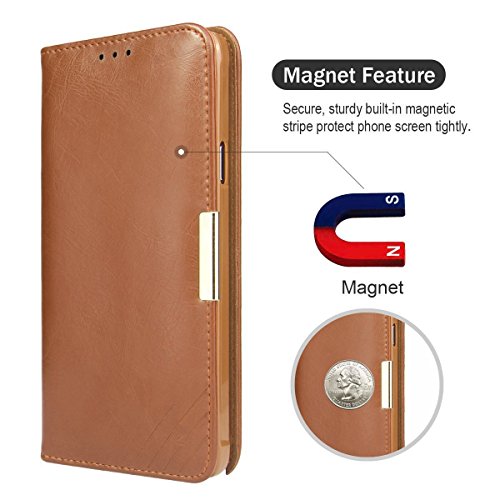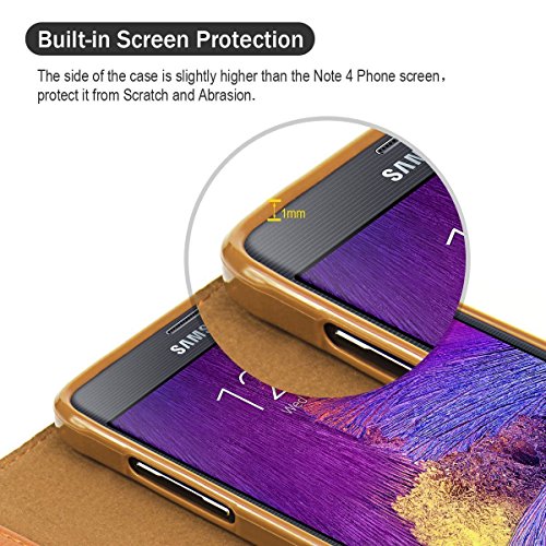 Feature : Genuine Leather: Made of high quality genuine leather and soft TPU back cover, good quality workmanship smooth inner, and hand feeling is more high-grade by the soft touch skin, snugness of phone case / Magnetic Closure: Invisble built-in magnetic slap closure over the whole edge of the case, tightly protect your phone / Wallet Case: Versatile wallet feature flip cover, built-in two card slots and a larger slot underneath for cash, just like a mini bag / Stand feature: Adjustable stand function, can be converted into a multi-angle stand case for video watching and messaging / Screen protection: The side of the case is slightly higher than the Samsung Note 5 phone screen,protect it from scratch and abrasion