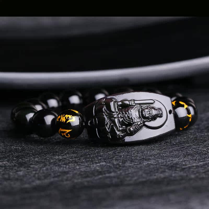 开光属鸡不动尊菩萨生肖本命佛心经手链黑曜石生肖鸡佛牌手串男女