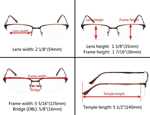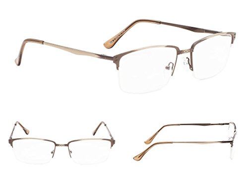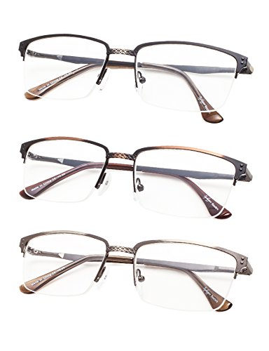 3-Pack Half-rim Brushed Metal Reading Glasses with Spring Hings