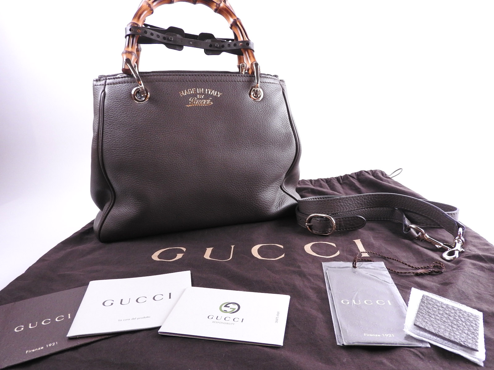 | Comes with | Bag, Shoulder strap, Official shop card(Issued by Hankyu Umeda Gucci Shop 2014.9.20), Manual, Sample Fabric |