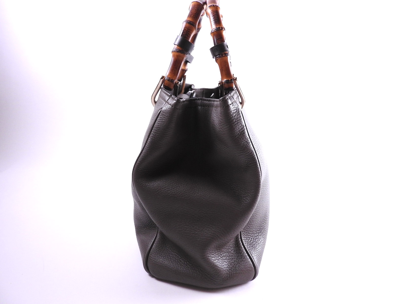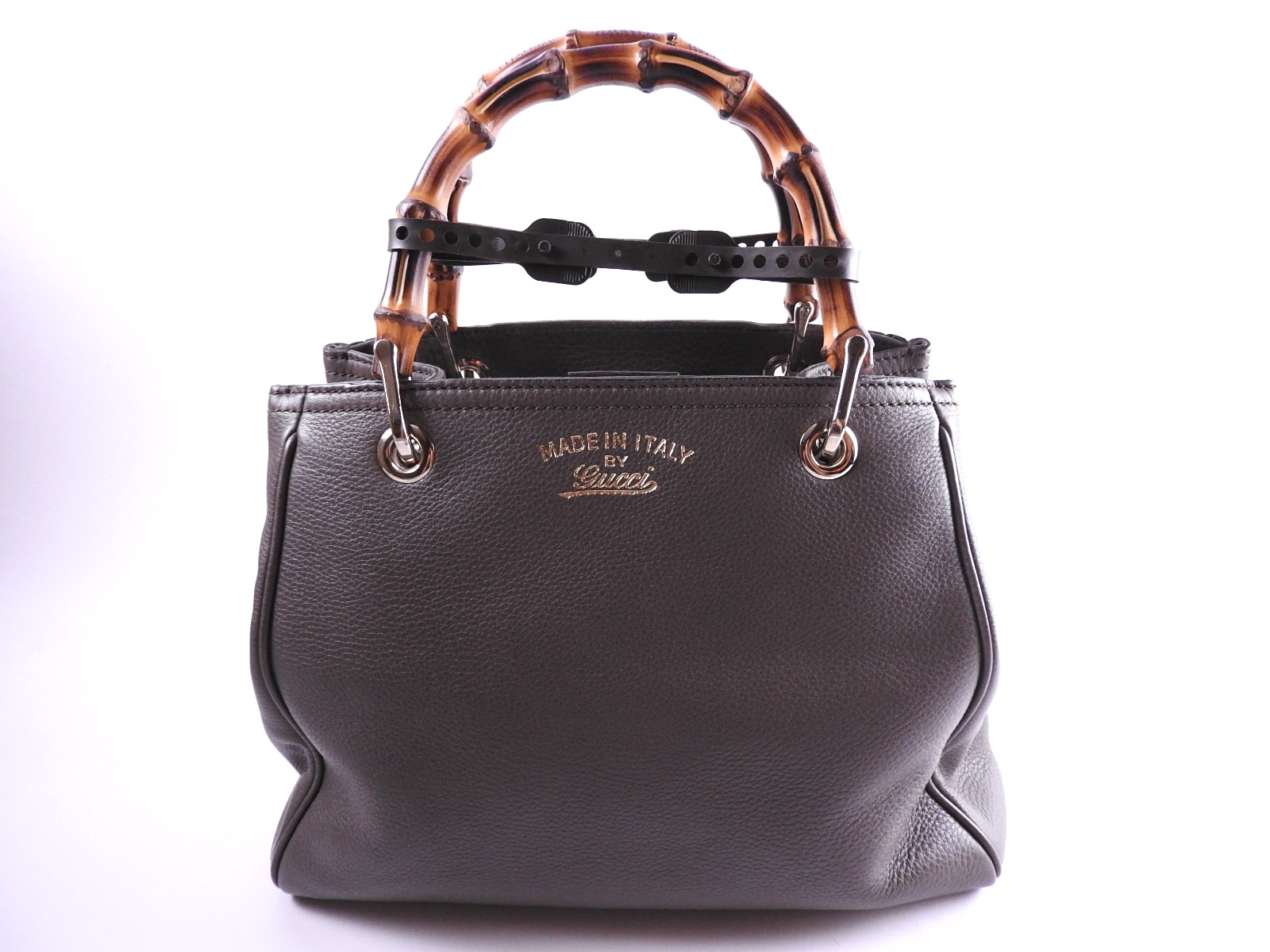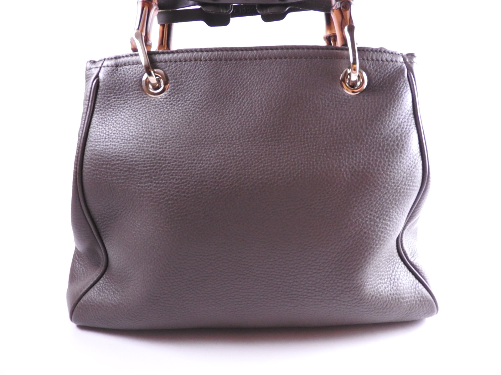 Auth GUCCI Bamboo Shopper Small 2way Shoulder Bag Tote Bag Calf Leather Charcoal Gray Gold 336032 A-7354