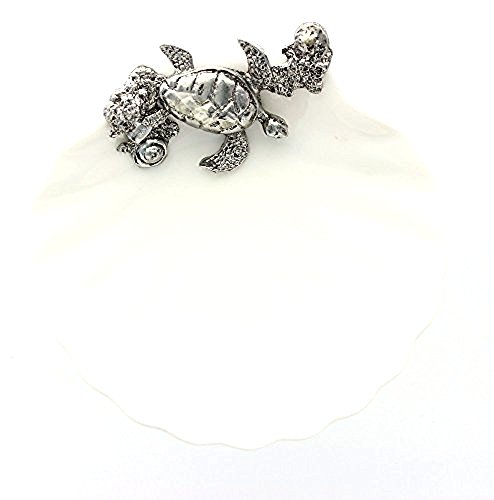 Ceramic Shell Plate with Silver Tortoise, 6" Diameter.