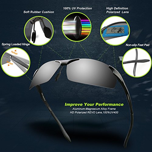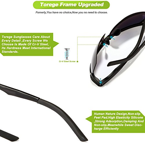 -. Feature : POLARIZED LENS- 100% UV400 protection coating, blocks 100% harmful UVA & UVB Rays. Restore true color, eliminate reflected light and scattered light,make the scenery more clear and soft and protect eyes perfectly. TAC lens includes 7 layers. The 1st layer is polarization layer. The 2nd and 3rd layers are bonding layers to enable durability. The 4th and 5th layers are UV protection layers to absorb UV light. The 6th and 7th layers are shatterproof layers. / LIGHTWEIGHTi AL-MG Alloy Design Is Ideal For Usage By Motorcycle And Cycling Bicycle, Driving, Running, Fishing,Racing, Skiing and Climbing, Trekking Or Other Outdoor Activities Enthusiasts.Polycarbonate lens and frames are impact, scratch resistant, durable and unbreakable. / SOFT RUBBER NOSEPAD,Let Your Nose Feel Comfortalbe While Wearing Torege Sports sunglasses for Cycling Running Fishing Golf . / LIFETIME BREAKAGE WARRANTY ON FRAME- Frames and lens are unbreakable for no risk purchasing. In case any broken problem happens, contact the seller of Torege without hesitation to solve the problem until satisfaction. Torege provides lifetime after sale service for all Torege products. / 30 DAY MONEY BACK GUARANTEE- All Torege customers enjoy 30 Day Money Back Guarantee. Customers can return and get refunded in case the purchasing is not satisfactory for any reason. You have no risk to try.