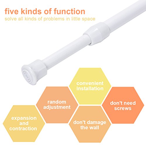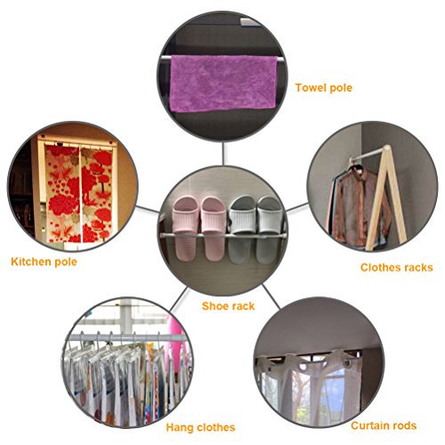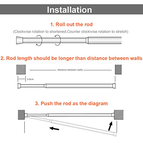 Advantages: adjustable length, 11.8 inch to 20 inch,19.69inch-27.60inch,21.65-35.43inch,23.62-43.31inch,you can adjust the length of the rod depending on your needs, easy to install, don’t need the screws, and don’t damage the wall or closet, Simple and practical.
