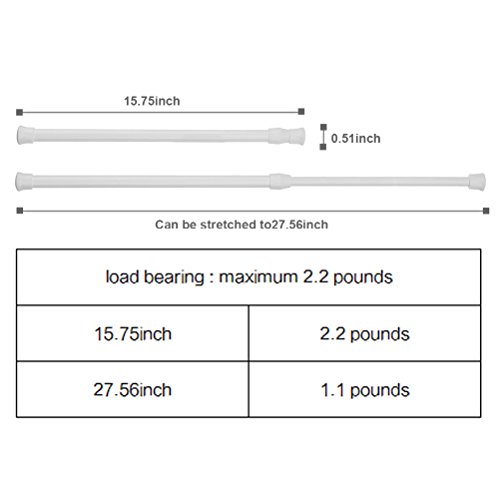 Material: made of durable stainless steel and plastic with brushed finish; diameter is 1.3cm/ 0.51 inch,each rod can bear 1.1 to 2.2 pounds, or 0.8-1.8 pounds,the friction of the wall and the extension of the rod will affect the use.