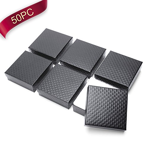 MESHA Jewelry Gift Boxes 3.5x3.5x1.25 Inches Black Bright Pelerine Design Cotton Filled Cardboard Paper Upgrade Bracelet Boxes Pack of 50