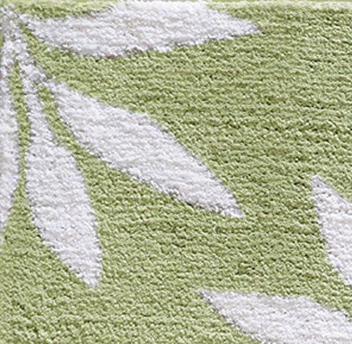 InterDesign Microfiber Leaves Bathroom Shower Accent Rug, 34 x 21, Green/White
