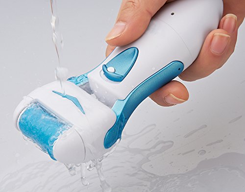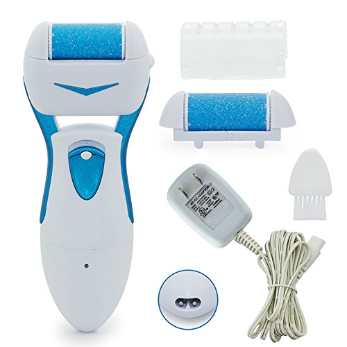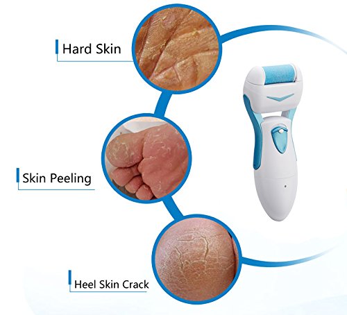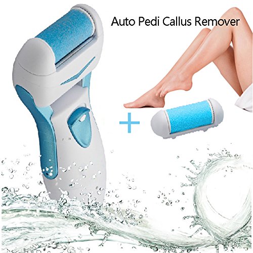- Feature : Gently and effectively buffs away rough, dry, hard and calloused skin in seconds. / Safe for removal of hard skin from your feet at home. / Specially designed mineral surface roller spins 360 degrees for fast results. / Portable Auto Pedi is rechargeable NO batteries needed which allows for complete mobility